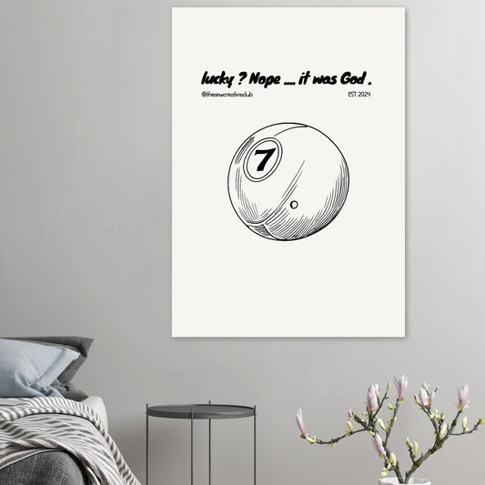 Minimalistisches und Christliches Poster - 'Lucky? Nope, It Was God' with Billiard Ball Design