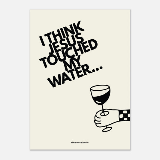 Christliches Poster 'I think Jesus touched my water' – Witziges Design in Beige und Schwarz