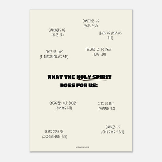 Christliches Poster - What the Holy Spirit does for us ( Beige / Schwarz )