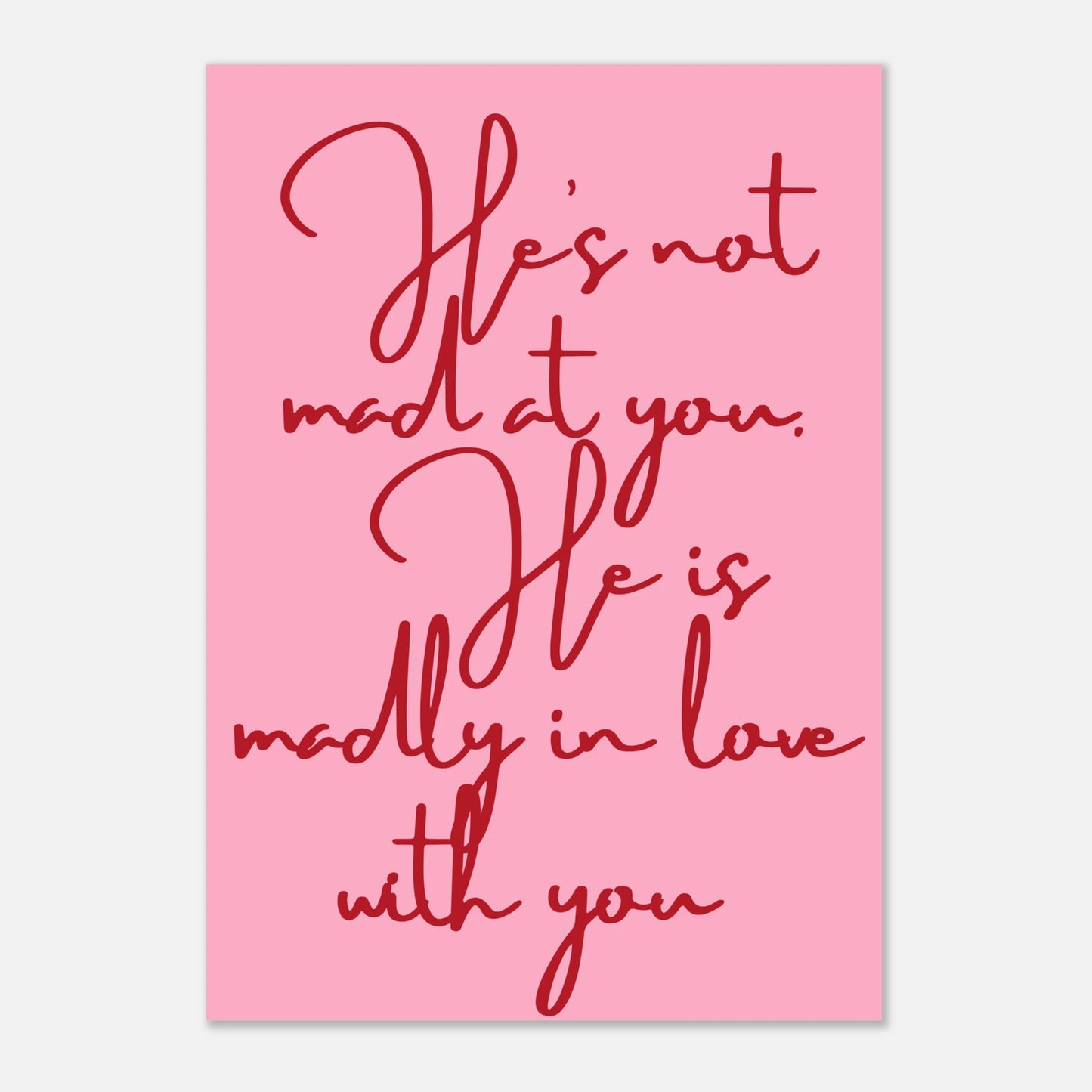 Christliches Poster - 'He is not mad at you, he is madly in love with you' in Rot und Rosa