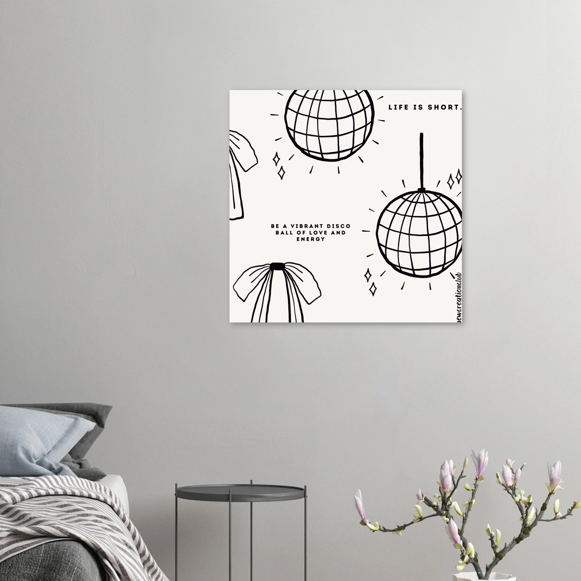 Bringe positive Energie in deine Umgebung mit unserem einzigartigen christlichen Poster, das mit der Botschaft 'Life is short - Be a Vibrant Disco Ball of Love and Energy' gestaltet ist. Dieses Poster erinnert uns daran, stets das Positive zu sehen und Liebe zu verbreiten, egal ob bei der Arbeit, in der Schule oder mit Freunden.